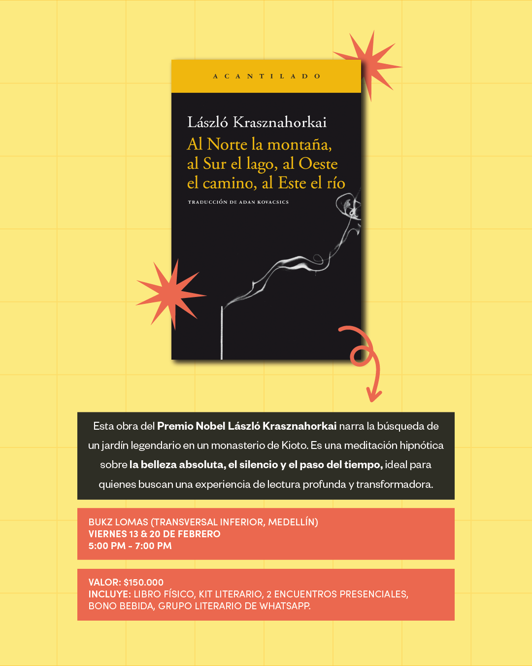 Este no es solo un club de lectura; es un espacio de desconexión y aprendizaje. Si buscas eventos culturales en Medellín o quieres profundizar en la literatura del nuevo Premio Nobel, este taller en Bukz Las Lomas es para ti.